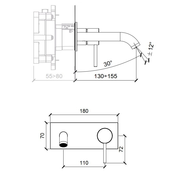 Смеситель для раковины, Almar, тип открывания воды-однорычажный, тип регулирования воды-керамический картридж, монтаж-настенный встраиваемый, отверстия для монтажа-2, высота, мм-70, вынос излива, мм-155, тип излива-неподвижный, донный клапан-отсутствует, тип подводки-жесткая, внутренняя часть-необходимо заказать, цвет-хром Смеситель для раковины, Almar, цвет-хром (Товар заказной, возврату не подлежит)