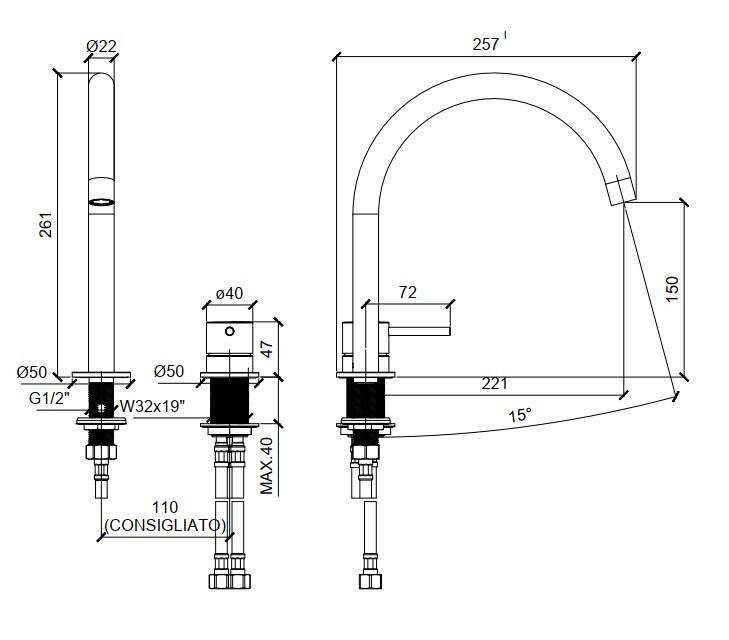 | Стандарт подводки | 1/2" |