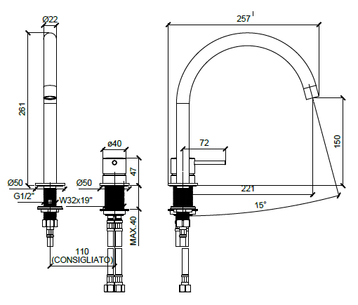 | Стандарт подводки | 1/2" |
