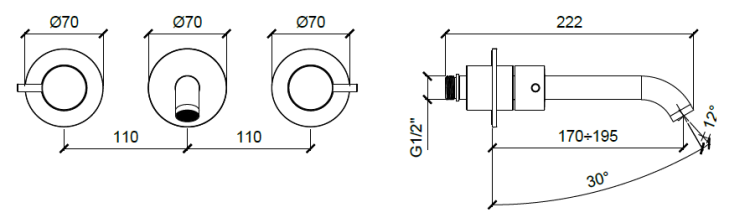 Смеситель для раковины, Almar, тип открывания воды-вентильный, тип регулирования воды-керамический картридж, монтаж-настенный встраиваемый, отверстия для монтажа-3, высота, мм-70, вынос излива, мм-170-195, тип излива-неподвижный, донный клапан-отсутствует, тип подводки-жесткая, стандарт подвода воды-1/2", внутренняя часть-необходимо заказать, цвет-Nickel Brushed Смеситель для раковины, Almar, цвет-Nickel Brushed (Товар заказной, возврату не подлежит)