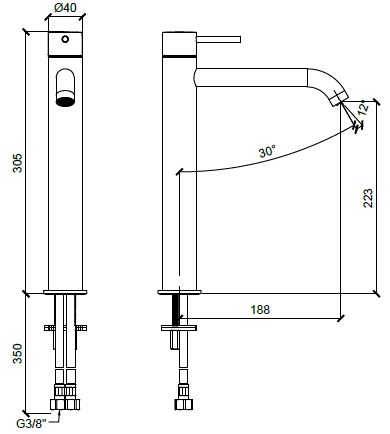 Смеситель для раковины, Almar, тип открывания воды-однорычажный, тип регулирования воды-керамический картридж, монтаж-на раковину/столешницу, отверстия для монтажа-1, высота, мм-305, вынос излива, мм-188, тип излива-неподвижный, донный клапан-отсутствует, тип подводки-гибкая, стандарт подвода воды-3/8", цвет-Polished Gold Смеситель для раковины, Almar, цвет-Polished Gold (Товар заказной, возврату не подлежит)
