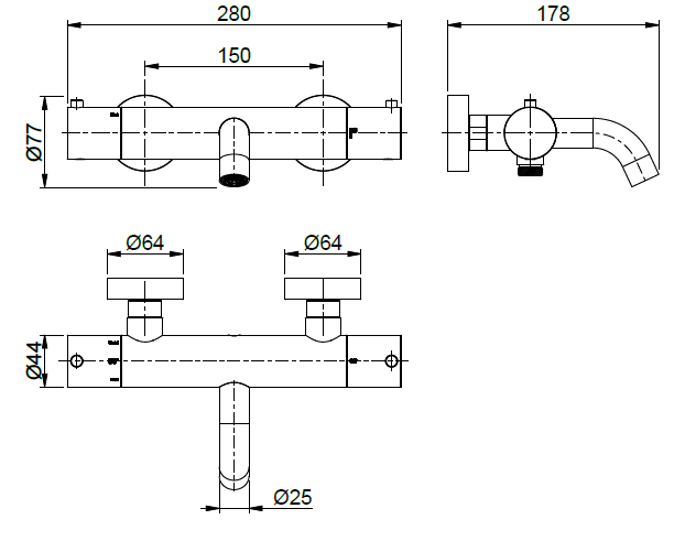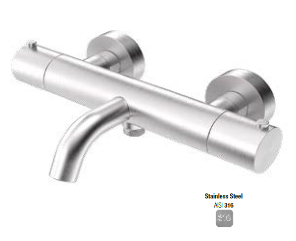 Смеситель для ванны и душа, Almar, 316 Stalnless Steel, тип открывания воды-вентильный, тип регулирования воды-термостатический картридж, монтаж-настенный, отверстия для монтажа-2, вынос излива, мм-178, тип излива-неподвижный, цвет-Stainless Steel Смеситель для ванны и душа, Almar, 316 Stalnless Steel, цвет-Stainless Steel (Товар заказной, возврату не подлежит)