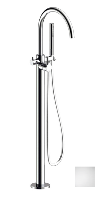 Смеситель для ванны и душа, Almar, тип открывания воды-однорычажный, тип регулирования воды-керамический картридж, монтаж-напольный, отверстия для монтажа-1, вынос излива, мм-277, в комплекте-ручной душ, держатель ручного душа, шланг,мм-1500, внутренняя часть-необходимо заказать, цвет-белый матовый Смеситель для ванны и душа, Almar, цвет-белый матовый (Товар заказной, возврату не подлежит)