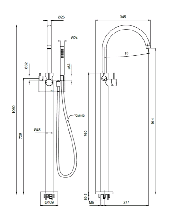Смеситель для ванны и душа, Almar, тип открывания воды-однорычажный, тип регулирования воды-керамический картридж, монтаж-напольный, отверстия для монтажа-1, вынос излива, мм-277, в комплекте-ручной душ, держатель ручного душа, шланг,мм-1500, внутренняя часть-необходимо заказать, цвет-чёрный матовый Смеситель для ванны и душа, Almar, цвет-чёрный матовый (Товар заказной, возврату не подлежит)