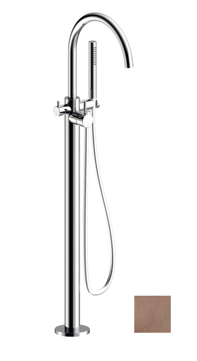 Смеситель для ванны и душа, Almar, тип открывания воды-однорычажный, тип регулирования воды-керамический картридж, монтаж-напольный, отверстия для монтажа-1, вынос излива, мм-277, в комплекте-ручной душ, держатель ручного душа, шланг,мм-1500, внутренняя часть-необходимо заказать, цвет-Copper Brushed PVD Смеситель для ванны и душа, Almar, цвет-Copper Brushed PVD (Товар заказной, возврату не подлежит)