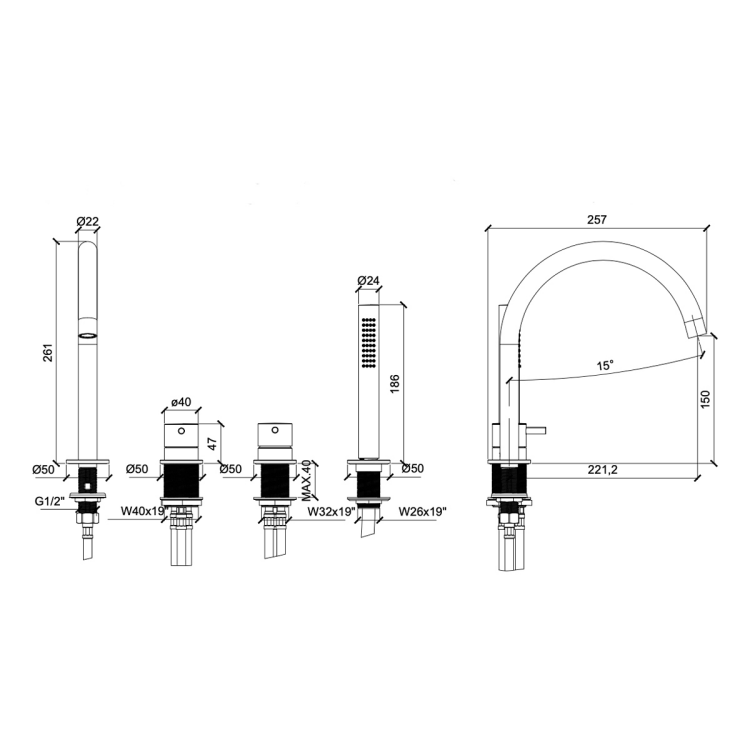 Смеситель для ванны и душа, Almar, без коллекции, тип открывания воды-однорычажный, тип регулирования воды-керамический картридж, монтаж-на борт ванны, отверстия для монтажа-4, вынос излива, мм-221,2, ручной душ, переключатель-в комплекте, цвет-High Brass Brushed PVD Смеситель для ванны и душа, Almar, цвет-High Brass Brushed PVD (Товар заказной, возврату не подлежит)