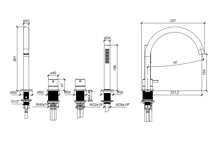 Смеситель для ванны и душа, Almar, тип открывания воды-однорычажный, тип регулирования воды-керамический картридж, монтаж-на борт ванны, отверстия для монтажа-4, вынос излива, мм-221,2, в комплекте-вытяжной ручной душ, переключатель, цвет-хром Смеситель для ванны и душа, Almar, цвет-хром (Товар заказной, возврату не подлежит)