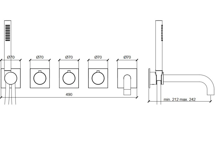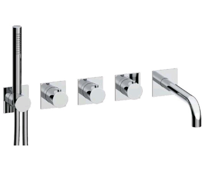 Смеситель для ванны и душа, Almar, на 3 потребителя, тип открывания воды-вентильный, тип регулирования воды-термостатический картридж, монтаж-настенный встраиваемый, отверстия для монтажа-5, вынос излива, мм-212-242, тип излива-неподвижный, ручной душ-в комплекте, розетки-квадрат, внутренняя часть-необходимо заказать, цвет-хром Смеситель для ванны и душа, Almar, цвет-хром (Товар заказной, возврату не подлежит)