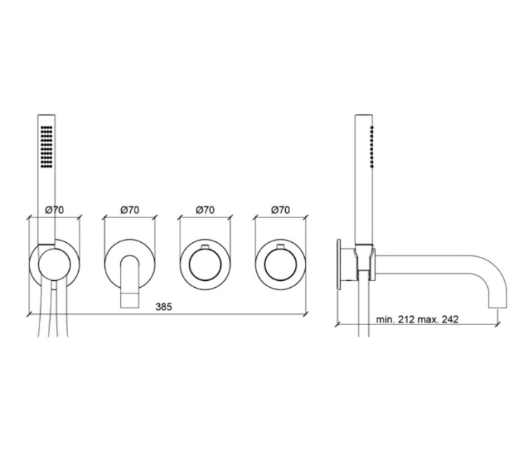 Смеситель для ванны и душа, Almar, Water Control Modular, тип открывания воды-однорычажный, тип регулирования воды-термостатический картридж, монтаж-настенный встраиваемый, отверстия для монтажа-4, круглые розетки с круглыми ручками, вынос излива, мм-212-242, тип излива-неподвижный, ручной душ-в комплекте, внутренняя часть-необходимо заказать, цвет-Absolute Black Brushed PVD Смеситель для ванны и душа, Almar, Water Control Modular, цвет-Absolute Black Brushed PVD (Товар заказной, возврату не подлежит)
