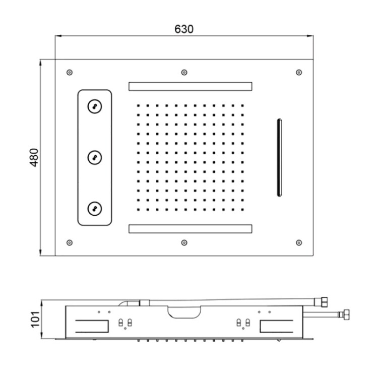 Верхний душ, Almar, Chromotherapy, тип установки-потолочный встраиваемый, размер душевого диска, мм-630*480, форма-прямоугольная, количество режимов-3, тип струи-дождь (Rain), каскад, вращение (spin), внутренняя часть-в комплекте, материал-нержавеющая сталь, цвет-Absolute Black Brushed PVD Верхний душ, Almar, Chromotherapy, 630*480, цвет-Absolute Black Brushed PVD (Товар заказной, возврату не подлежит)