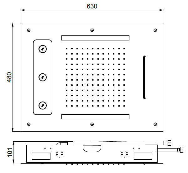 Верхний душ, Almar, Chromotherapy, тип установки-потолочный встраиваемый, размер душевого диска, мм-630*480, форма-квадратная, количество режимов-3, тип струи-дождь (Rain), каскад, вращение (spin), с хромотерапией, в комплекте-пульт дистанционного управления, трансформатор, рама для встраивания, комплект для подключения, подсветка RGB LED со светодиодными полосками, крепления, цвет-нержавеющая сталь глянцевая Верхний душ, Almar, Chromotherapy, 630*480, цвет-нержавеющая сталь глянцевая (Товар заказной, возврату не подлежит)
