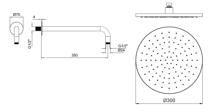 | Размер верхнего душа, мм | 300*300 |
