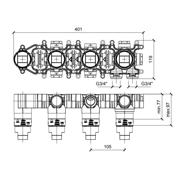 Внутренняя часть, Almar, Modular Push, назначение-смеситель для душа термостатический, на 2 потребителя, горизонтальный модуль для душа Внутренняя часть, Almar, Modular Push, назначение-смеситель для душа термостатический (Товар заказной, возврату не подлежит)
