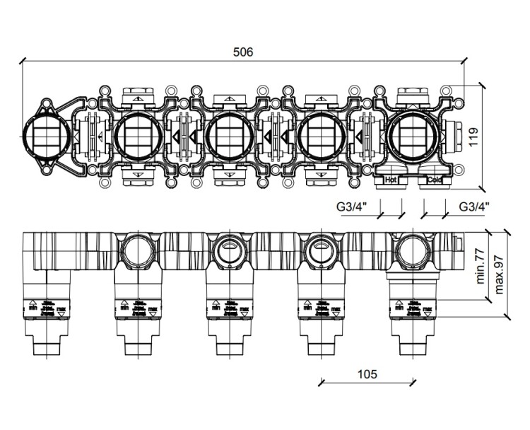 Внутренняя часть, Almar, Modular Push, назначение-смеситель для душа термостатический, на 3 потребителя, горизонтальный модуль для душа Внутренняя часть, Almar, Modular Push, назначение-смеситель для душа термостатический, на 3 потребителя, горизонтальный модуль для душа (Товар заказной, возврату не подлежит)