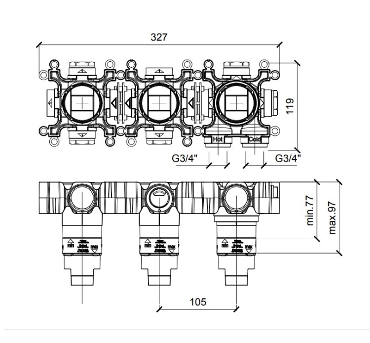 Внутренняя часть, Almar, Modular Push, термостатического смесителя на 2 потребителя, горизонтальный модуль Внутренняя часть, Almar, Modular Push, термостатического смесителя на 2 потребителя, горизонтальный модуль (Товар заказной, возврату не подлежит)