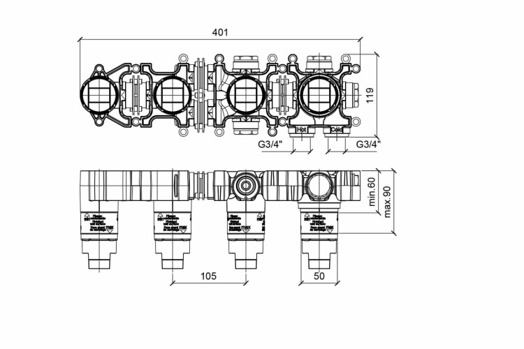 Внутренняя часть, Almar, Water Control Modular, термостатического смесителя с переключателем на 2 положения, горизонтальный модуль для ванны Внутренняя часть, Almar, Water Control Modular, термостатического смесителя с переключателем на 2 положения, горизонтальный модуль для ванны (Товар заказной, возврату не подлежит)