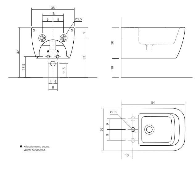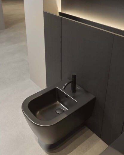 Биде, Antonio Lupi, Komodo, тип установки-подвесной, ширина, мм-360, глубина, мм-540, высота, мм-260, форма чаши-прямоугольная, отверстия для смесителя-1 сквозное, 2 промаркированных, материал-керамика, цвет-черный матовый Goffrata Биде, Antonio Lupi, Komodo, подвесной, шгв 360*540*260, цвет-черный матовый Goffrata