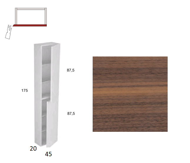 Шкаф-пенал, Antonio Lupi, PIANA, правосторонний, ширина, мм-450, глубина, мм-200, высота, мм-1750, дверцы-есть, в комплекте-5 полок, цвет-Noce Canadese Шкаф-пенал, Antonio Lupi, PIANA, правосторонний, шгв 450*200*1750, цвет-Noce Canadese
