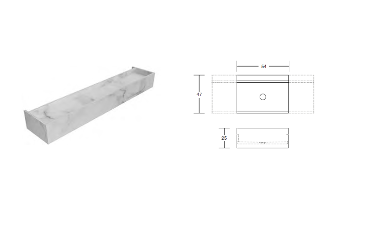 Столешница, Antonio Lupi, Street, ширина, мм-1500, глубина, мм-470, высота, мм-250, интегрированная раковина-есть, материал-мрамор, с бортиками для закрытия, цвет-Stone Grey Столешница, Antonio Lupi, Street, шгв 1500*470*250, есть, цвет-Stone Grey