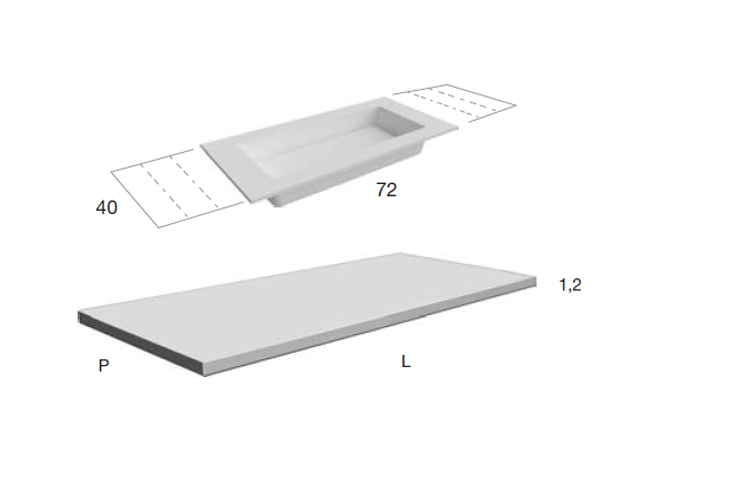 Столешница, Antonio Lupi, Top, ширина, мм-2160, глубина, мм-470, высота, мм-12, тип установки-на тумбу, вырез под раковину-два (слева и справа), интегрированная раковина-NIDO72, вырез под смеситель-отсутствует, материал-Flumood, цвет-белый Столешница, Antonio Lupi, Top, шгв 2160*470*12, NIDO72, цвет-белый (cтоимость столешниц в комплекте с мебелью)