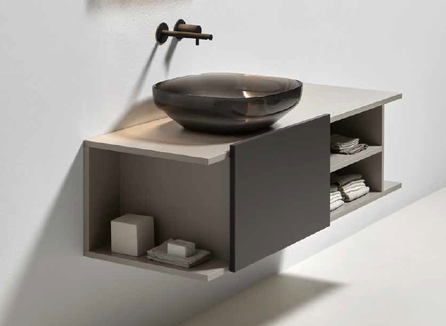 Тумба под раковину, Antonio Lupi, Nemesis, левостороняя, ширина, мм-1170, глубина, мм-490, высота, мм-375, тип установки-подвесной, раковина-необходимо заказать, количество раковин в комплекте-1, вырез под раковину-один, монтаж раковины-на тумбу, вырез под смеситель-отсутствует, столешница-в комплекте, ящики-1, цвет ящика-Fango, материал корпуса-Smart HPL, материал фасада-Smart HPL, в комплекте-1 открытая полка, цвет-Lino/Fango Тумба под раковину, Antonio Lupi, Nemesis, левостороняя, шгв 1170*490*375, раковина-необходимо заказать, цвет-Lino/Fango