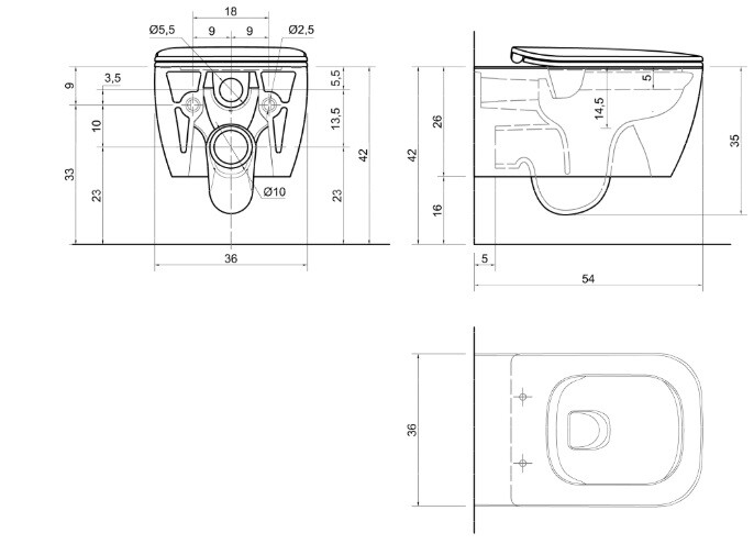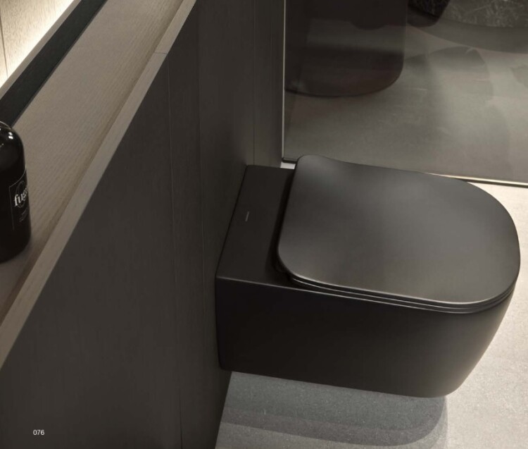 Унитаз, Antonio Lupi, Komodo, безободковый (с открытым смывным краем), тип установки-подвесной, ширина, мм-360, глубина, мм-540, высота, мм-260, форма чаши-прямоугольная, выпуск-горизонтальный, материал-керамика, съемное сиденье FLAT с плавным опусканием-в комплекте, цвет-черный матовый Goffrata Унитаз, Antonio Lupi, Komodo, подвесной, шгв 360*540*260, цвет-черный матовый Goffrata