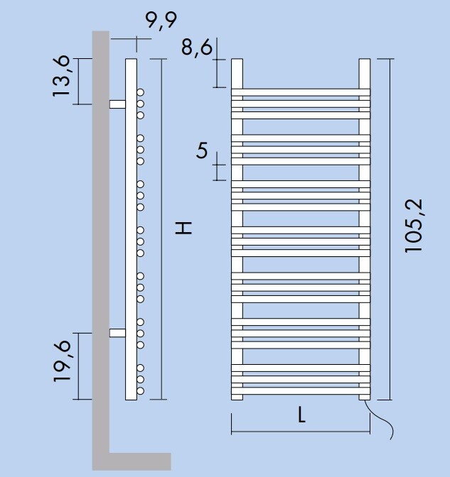 Полотенцесушитель, Antrax, Rabbit E 22, электрический, ширина, мм-435, глубина, мм-99, высота, мм-1052, с термостатом, подключение-нижнее слева, кабель,мм-900, мощность, Вт-400, материал-сталь углеродистая, назначение-система электроснабжения, цвет-чёрный матовый Полотенцесушитель, Antrax, Rabbit E 22, шгв 435*99*1052, термостат, нижнее слева, цвет-чёрный матовый
