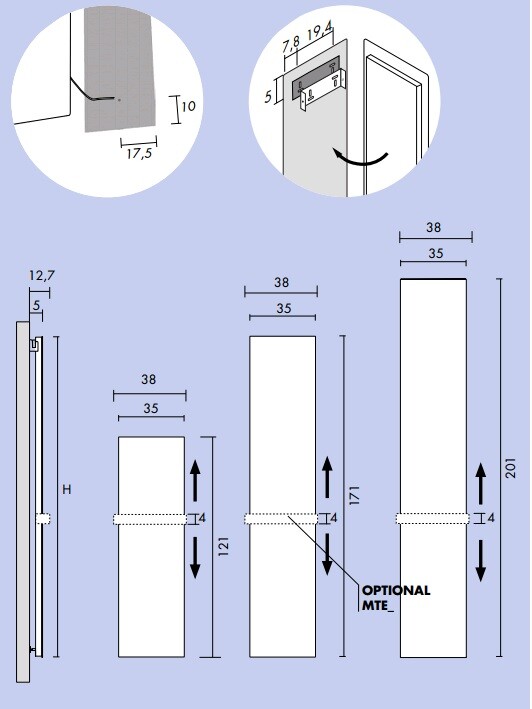 Полотенцесушитель, Antrax, Tavola Liscia, электрический, ширина, мм-350, глубина, мм-127, высота, мм-1710, электрокомплект-кабель,мм-1150, мощность, Вт-500, материал-алюминий, назначение-система электроснабжения, цвет-черный матовый Полотенцесушитель, Antrax, Tavola Liscia, шгв 350*127*1710, кабель, цвет-черный матовый
