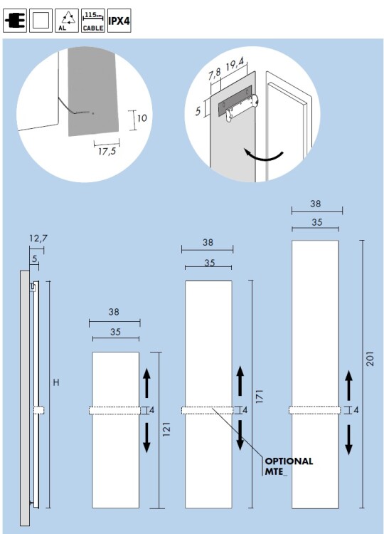 Полотенцесушитель, Antrax, Tavola Liscia, электрический, ширина, мм-350, глубина, мм-127, высота, мм-1210, электрокомплект-кабель,мм-1150, мощность, Вт-375, материал-алюминий, назначение-система электроснабжения, цвет-белый матовый Полотенцесушитель, Antrax, Tavola Liscia, шгв 350*127*1210, кабель, цвет-белый матовый