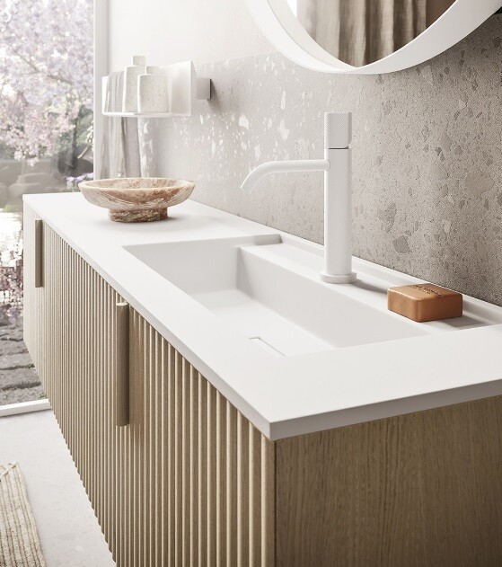 Столешница, ARBI, Block, ширина, мм-1406, глубина, мм-375, высота, мм-15, тип установки-на тумбу, интегрированная раковина-есть, вырез под смеситель-1, с покрытием слива в отделке, слив-необходимо заказать, материал-Cristalplant, цвет-белый Столешница, ARBI, Block, шгв 1406*375*15, есть, цвет-белый