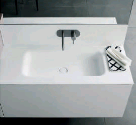 Столешница, ARBI, Fly, ширина, мм-1050, глубина, мм-505, высота, мм-10, вырез под раковину-один, интегрированная раковина-есть, вырез под смеситель-отсутствует, материал-Corian, цвет-белый Столешница, ARBI, Fly, шгв 1050*505*10, с интегрированной раковиной, цвет-белый