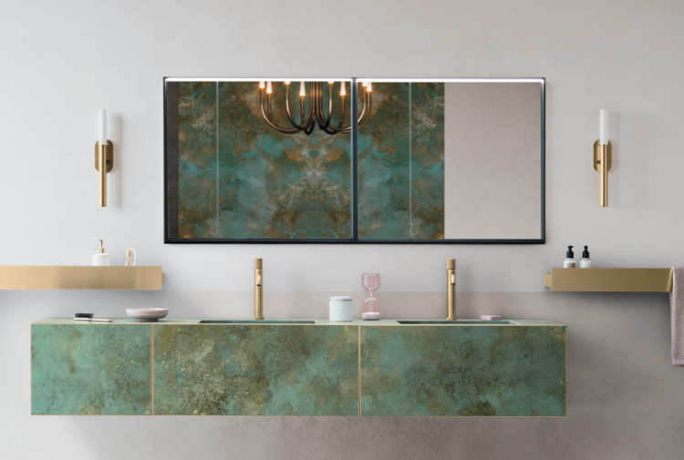 Столешница, ARBI, Slot, ширина, мм-1910, глубина, мм-500, высота, мм-12, тип установки-на тумбу, интегрированная раковина-есть (2 шт.), вырез под смеситель-отсутсвует, материал-Laminam, цвет-DU Ossido Verderame Столешница, ARBI, Slot, шгв 1910*500*12, с интегрированной раковиной (2 шт.), цвет-DU Ossido Verderame