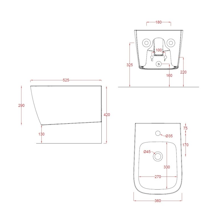Биде, Artceram, A16, тип установки-подвесной, ширина, мм-360, глубина, мм-525, высота, мм-290, форма чаши-прямоугольная, отверстия для смесителя-1, крепления в комплекте, цвет-green salvia Биде, Artceram, A16, подвесной, шгв 360*525*290, цвет-green salvia