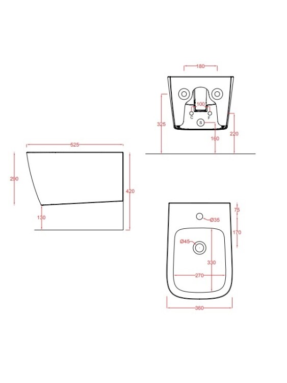 Биде, Artceram, A16, тип установки-подвесной, ширина, мм-360, глубина, мм-525, высота, мм-290, форма чаши-прямоугольная, отверстия для смесителя-1, крепления в комплекте, цвет-Matt White Биде, Artceram, A16, подвесной, шгв 360*525*290, цвет-Matt White