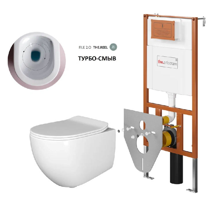 Комплект, Artceram, File 2.0, состав-унитаз, арт. FLV006 01 00, безободковый, с турбо смывом, тип установки-подвесной, ширина, мм-370, глубина, мм-520, высота, мм-370, форма чаши-овальная, выпуск-горизонтальный, материал-санфаянс, вид грязеотталкивающего покрытия-Saniglaze, сиденье с крышкой, с плавным опусканием арт. FLA014 01, крепления в комплекте, цвет-белый, инсталляция арт. 700.101, шгв 500*180*1100, тип смыва-двойной, объем смыва, л-3/6, звукоизоляция, крепежи, клавиша смыва-необходимо заказать Комплект, Artceram, File 2.0, унитаз с турбо смывом+сидение+инсталляция, цвет-белый