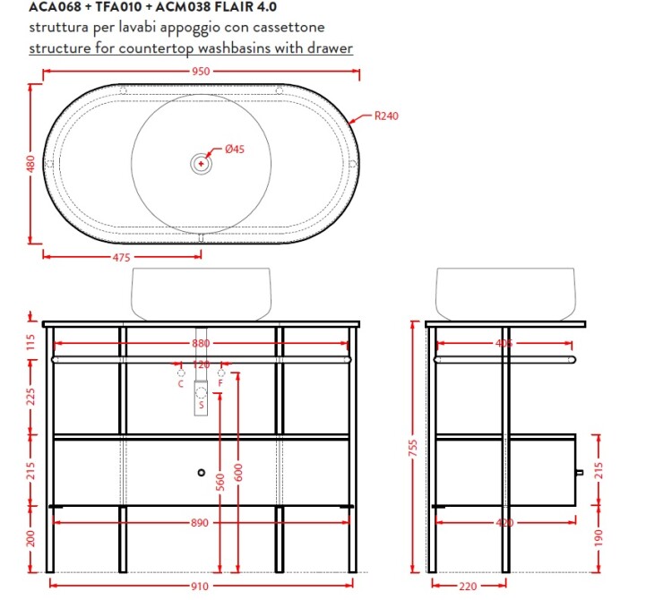 Консоль, Artceram, Flair 4.0, ширина, мм-950, глубина, мм-480, высота, мм-755, материал-металл, для настольных раковин, цвет-moka Консоль, Artceram, Flair 4.0, шгв 950*480*755, для настольных раковин, цвет-moka