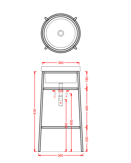 Консоль, Artceram, Fuori scala, для круглой раковины 400 мм, цвет-матовый черный Консоль, Artceram, Fuori scala, для круглой раковины 400 мм, цвет-матовый черный