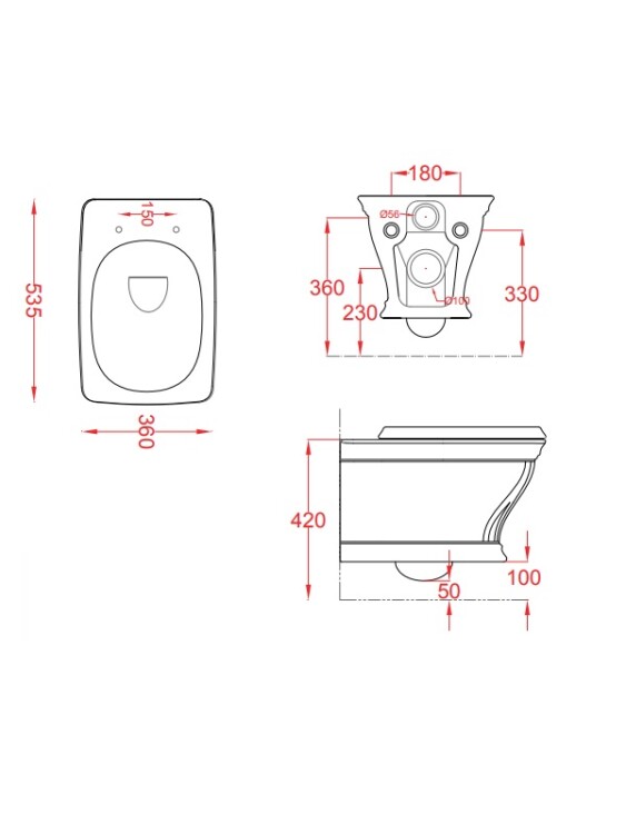 | Вид унитаза | традиционный (с закрытым смывным краем) |