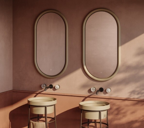 Зеркало, Artceram, Milano, овальное, ширина, мм-550, глубина, мм-55, высота, мм-1000, тип установки-настенный, с подсветкой, тип освещения-светодиодная подсветка (LED), тип включения-сенсорный, рама-есть, материал рамы-керамика, декор-без декора, цвет рамы-brown matera Зеркало, Artceram, Milano, овальное, шгв 550*55*1000, с подсветкой, цвет рамы-brown matera