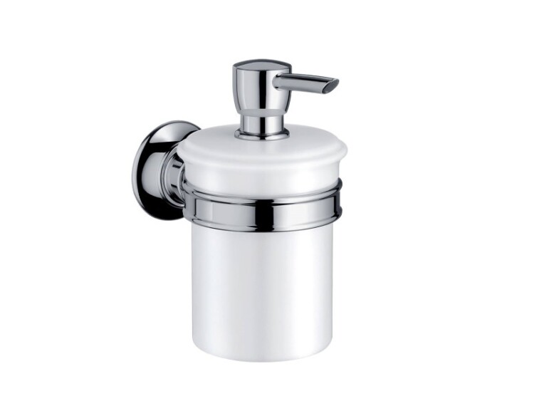 Дозатор для жидкого мыла, Hansgrohe, Axor Montreux, с держателем, ширина, мм-72, глубина, мм-136, высота, мм-148, ёмкость(мл)-300, тип установки-настенный, материал колбы-фарфор, материал-металл, цвет-шлифованный черный хром Дозатор для жидкого мыла, Hansgrohe, Axor Montreux, шгв 72*136*148, цвет-шлифованный черный хром