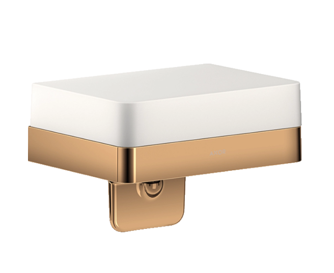 Дозатор для жидкого мыла, Axor, Axor Universal Softsquare, механический (нажимной), ширина, мм-150, глубина, мм-110, высота, мм-99, ёмкость(мл)-180, тип установки-настенный, материал колбы-стекло, цвет колбы-белый, цвет дозатора-полированная бронза Дозатор для жидкого мыла, Axor, Axor Universal Softsquare, шгв 150*110*99, цвет дозатора-полированная бронза