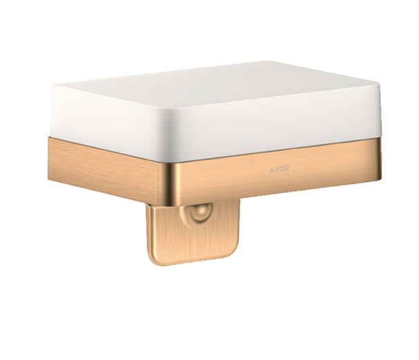 Дозатор для жидкого мыла, Axor, Axor Universal Softsquare, механический (нажимной), ширина, мм-150, глубина, мм-110, высота, мм-99, ёмкость(мл)-180, тип установки-настенный, материал колбы-стекло, цвет колбы-белый, цвет дозатора-шлифованная бронза Дозатор для жидкого мыла, Axor, Axor Universal Softsquare, шгв 150*110*99, цвет дозатора-шлифованная бронза