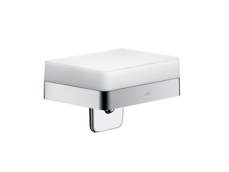 Дозатор для жидкого мыла, Axor, Axor Universal Softsquare, механический (нажимной), ширина, мм-150, глубина, мм-110, высота, мм-99, ёмкость(мл)-180, тип установки-настенный, материал колбы-стекло, цвет колбы-белый, цвет дозатора-хром Дозатор для жидкого мыла, Axor, Axor Universal Softsquare, шгв 150*110*99, цвет дозатора-хром