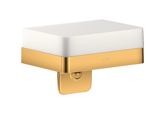 Дозатор для жидкого мыла, Axor, Axor Universal Softsquare, механический (нажимной), ширина, мм-150, глубина, мм-110, высота, мм-99, ёмкость(мл)-180, тип установки-настенный, материал колбы-стекло, цвет колбы-белый, цвет дозатора-полированное золото Дозатор для жидкого мыла, Axor, Axor Universal Softsquare, шгв 150*110*99, цвет дозатора-полированное золото