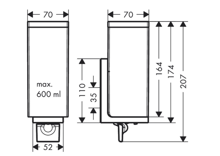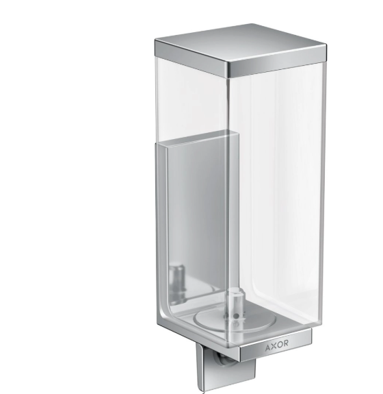 Дозатор для жидкого мыла, Axor, Axor Universal Rectangular, механический (нажимной), ширина, мм-70, глубина, мм-70, высота, мм-207, ёмкость(мл)-600, тип установки-настенный, материал колбы-пластик, цвет колбы-прозрачный, цвет дозатора-хром Дозатор для жидкого мыла, Axor, Axor Universal Rectangular, шгв 70*70*207, цвет дозатора-хром