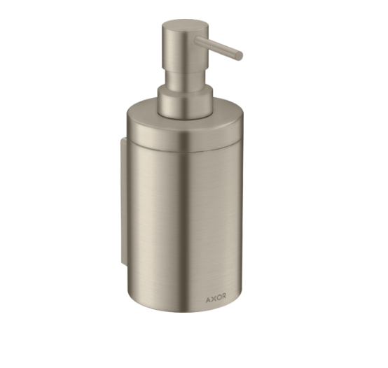 Дозатор для жидкого мыла, Axor, Axor Universal Circular, механический (нажимной), ширина, мм-76, глубина, мм-107, высота, мм-182, ёмкость(мл)-300, тип установки-настенный, материал колбы-металл, цвет колбы-шлифованный никель, цвет дозатора-шлифованный никель Дозатор для жидкого мыла, Axor, Axor Universal Circular, шгв 76*107*182, цвет дозатора-шлифованный никель