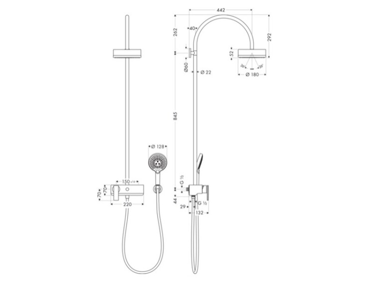 Душевая стойка, Hansgrohe, Axor Citterio, смеситель-есть, тип открывания воды-однорычажный, тип регулирования воды-керамический узел смешивания, верхний душ-есть, форма верхнего душа-круглая, размер верхнего душа-180, держатель верхнего душа-есть, вынос, мм-420, количество режимов верхнего душа-1, тип струи верхнего душа-Rain, размер штанги, мм-845, ручной душ-есть, размер ручного душа-150, шланг-есть, размер шланга, мм-1600, цвет-полированный черный хром, комплектация-держатель ручного душа Душевая стойка, Hansgrohe, Axor Citterio, цвет-полированный черный хром