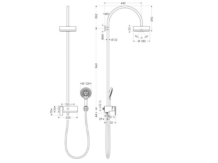 Душевая стойка, Hansgrohe, Axor Citterio, смеситель-есть, тип открывания воды-однорычажный, тип регулирования воды-керамический узел смешивания, верхний душ-есть, форма верхнего душа-круглая, размер верхнего душа-180, держатель верхнего душа-есть, вынос, мм-420, количество режимов верхнего душа-1, тип струи верхнего душа-Rain, размер штанги, мм-845, ручной душ-есть, размер ручного душа-150, количество режимов ручного душа-3, шланг-есть, размер шланга, мм-1600, цвет-шлифованный никель, комплектация-держатель ручного душа Душевая стойка, Hansgrohe, Axor Citterio, цвет-шлифованный никель