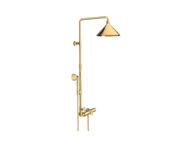 Душевая стойка, Hansgrohe, Axor Showers/Front, тип открывания воды-вентильный, тип регулирования воды-термостатический картридж, верхний душ-есть, форма верхнего душа-конусообразная, размер верхнего душа-279, держатель верхнего душа-есть, вынос, мм-400, количество режимов верхнего душа-2, тип струи верхнего душа-RainAir, Rain, телескопическая штанга верхнего душа, регулировка,мм-300, размер штанги, мм-920-1280, ручной душ-есть, размер ручного душа-85, количество режимов ручного душа-1, тип струи ручного душа-Rain, шланг-есть, с металлическим эффектом, размер шланга, мм-1600, цвет-полированная медь, регулируемый угол верхнего душа, переключение типов струи с помощью кнопки Select, поворотный держатель для душа, регулируемое по высоте крепление ручного душа, предохранительный ограничитель при 40°C, регулируемый ограничитель температуры горячей воды, соединительная резьба G 1/2 Душевая стойка, Hansgrohe, Axor Showers/Front, цвет-полированная медь