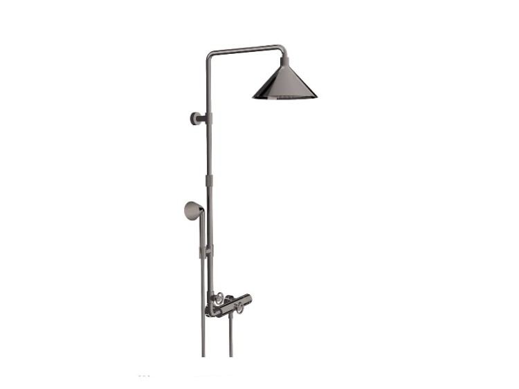 Душевая стойка, Hansgrohe, Axor Showers/Front, тип открывания воды-вентильный, тип регулирования воды-термостатический картридж, верхний душ-есть, форма верхнего душа-конусообразная, размер верхнего душа-279, держатель верхнего душа-есть, вынос, мм-400, количество режимов верхнего душа-2, тип струи верхнего душа-RainAir, Rain, телескопическая штанга верхнего душа, регулировка,мм-300, размер штанги, мм-920-1280, ручной душ-есть, размер ручного душа-85, количество режимов ручного душа-1, тип струи ручного душа-Rain, шланг-есть, с металлическим эффектом, размер шланга, мм-1600, цвет-полированный черный хром, регулируемый угол верхнего душа, переключение типов струи с помощью кнопки Select, поворотный держатель для душа, регулируемое по высоте крепление ручного душа, предохранительный ограничитель при 40°C, регулируемый ограничитель температуры горячей воды, соединительная резьба G 1/2 Душевая стойка, Hansgrohe, Axor Showers/Front, цвет-полированный черный хром